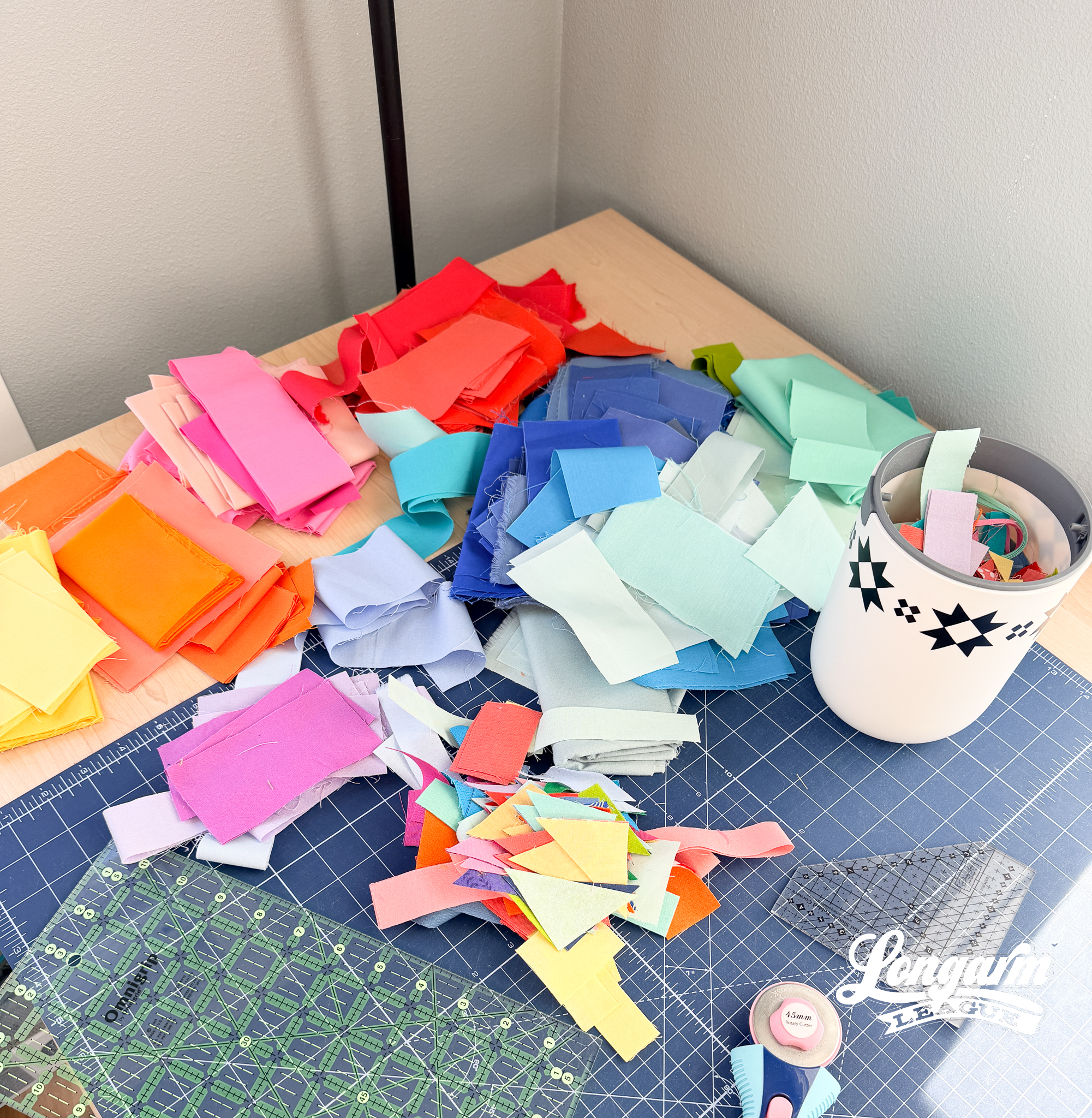 I knew I wanted to make the smallest baby/lap size, so I started pulling fat quarters out and soon had a rainbow theme going on.
