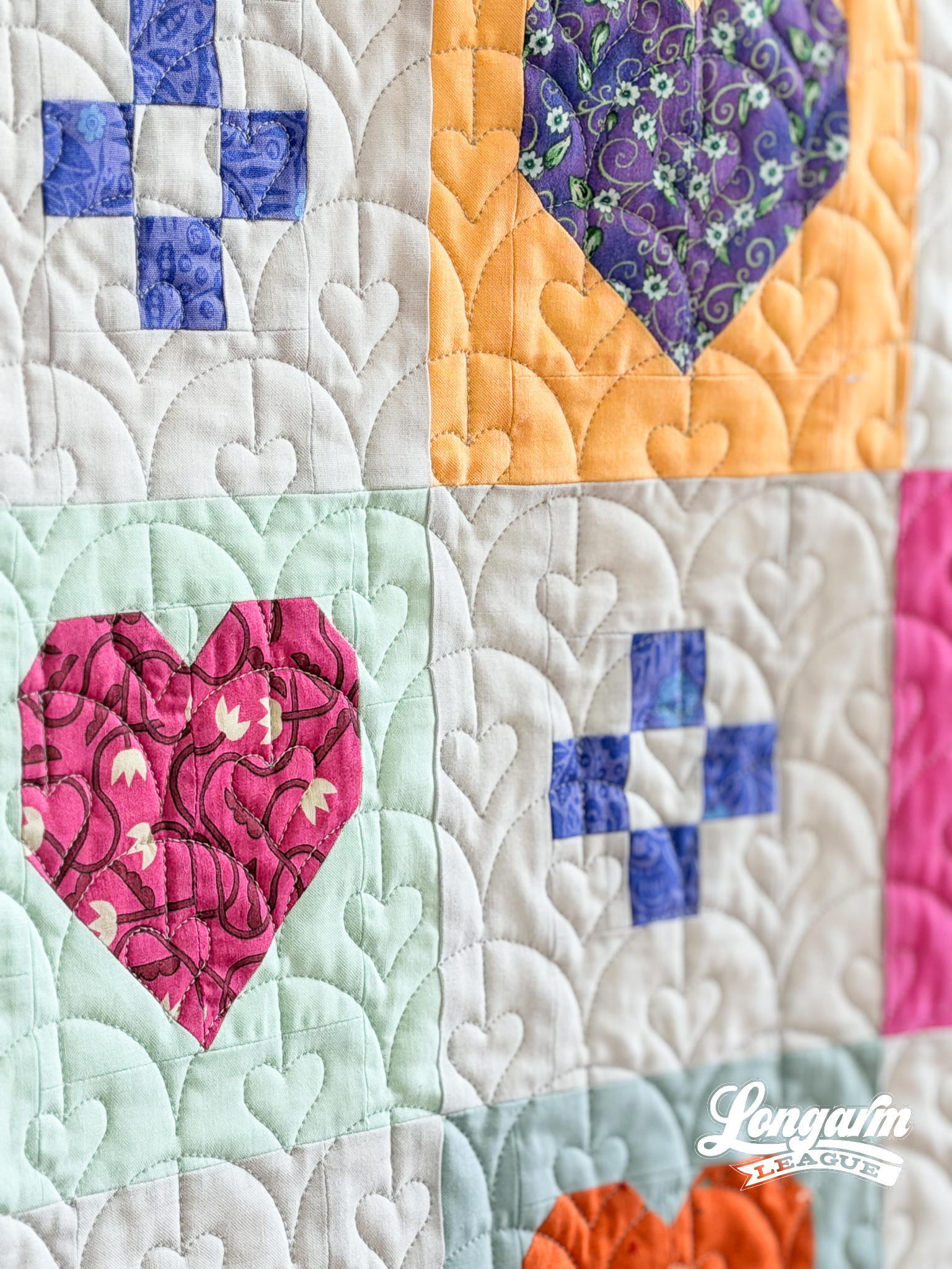 The scale of the heart in relation to the clamshell is giving dainty cuteness! On this quilt, that's the same vibe as the little 9-patches in the alternate blocks, which are so adorable.
