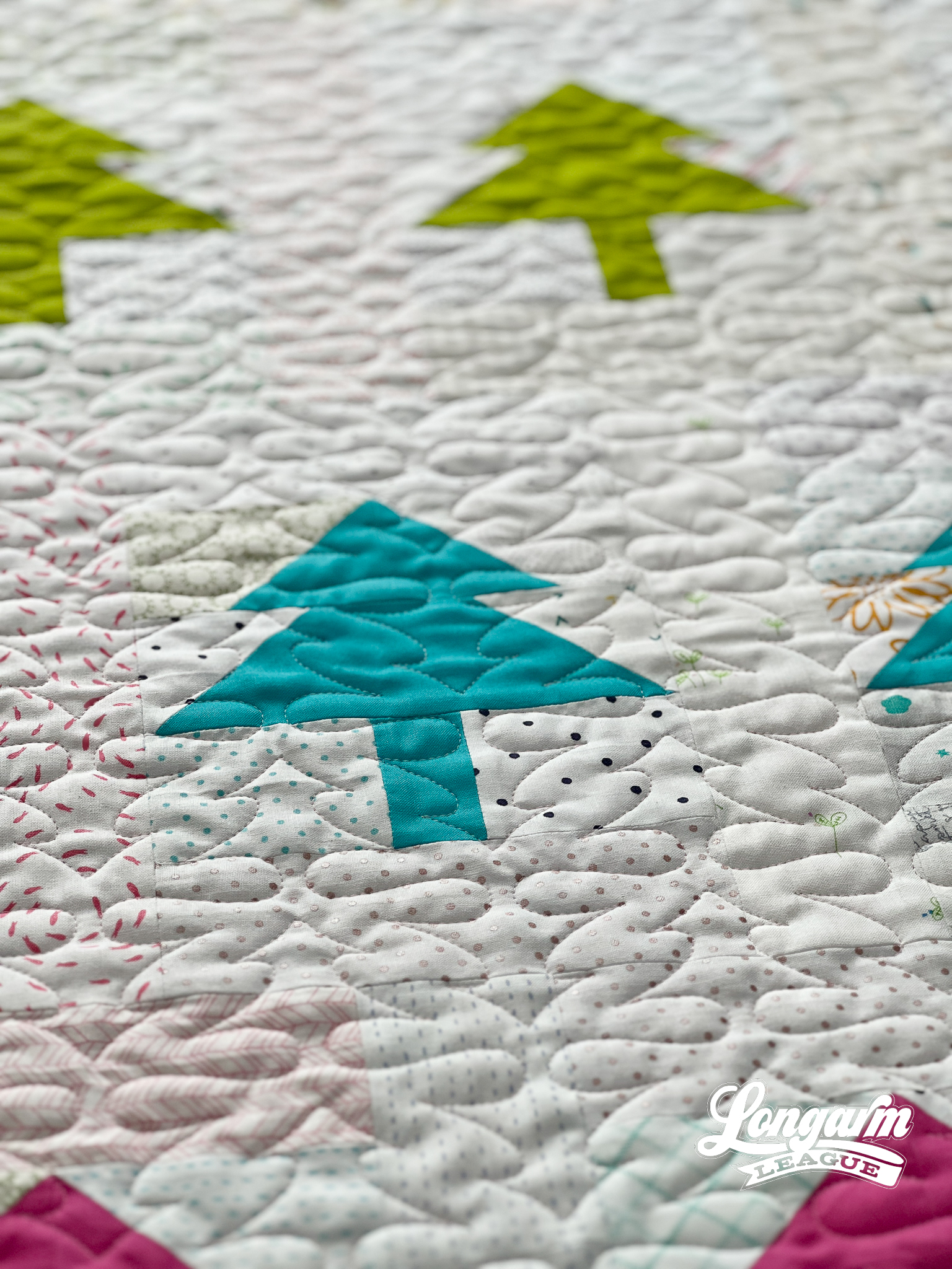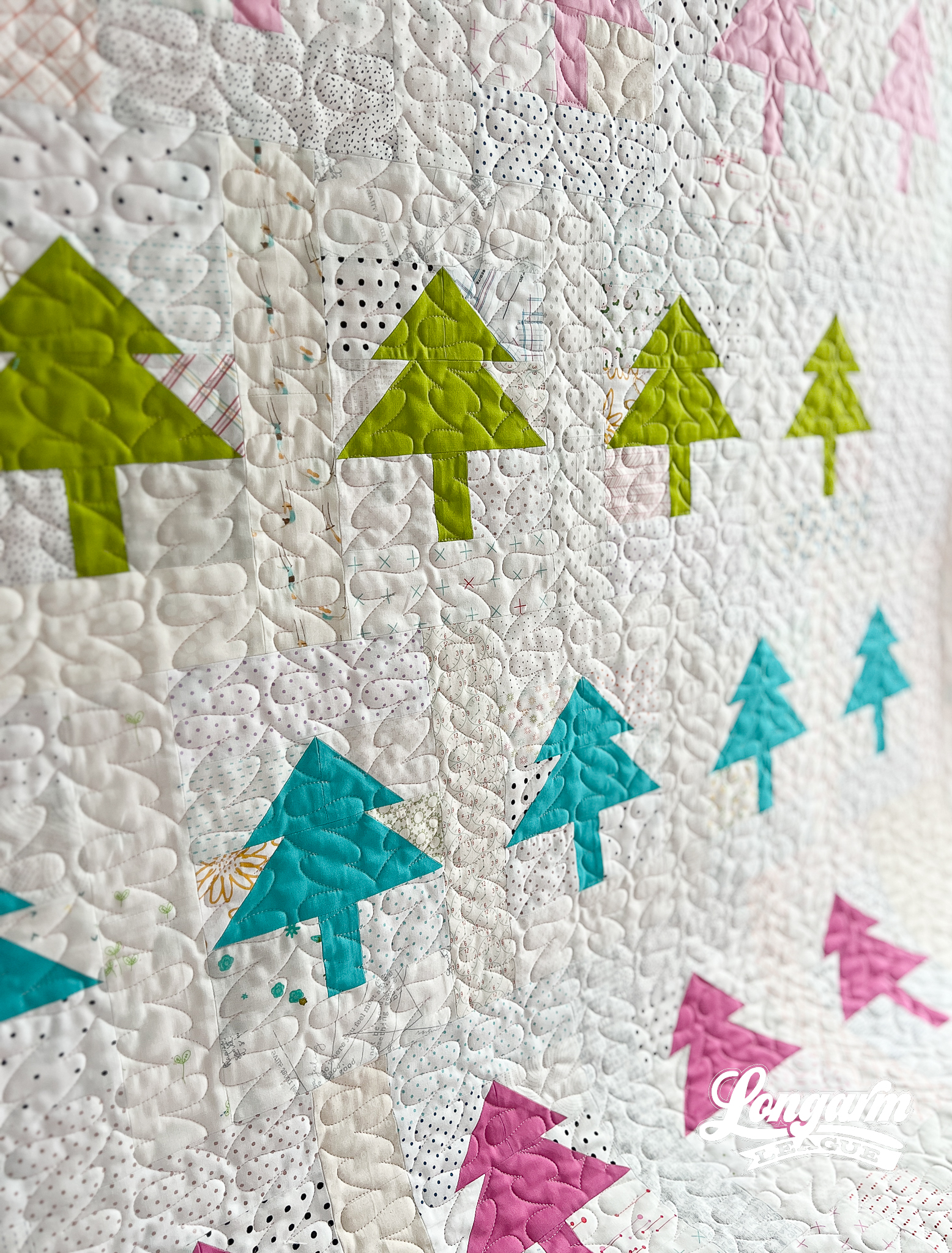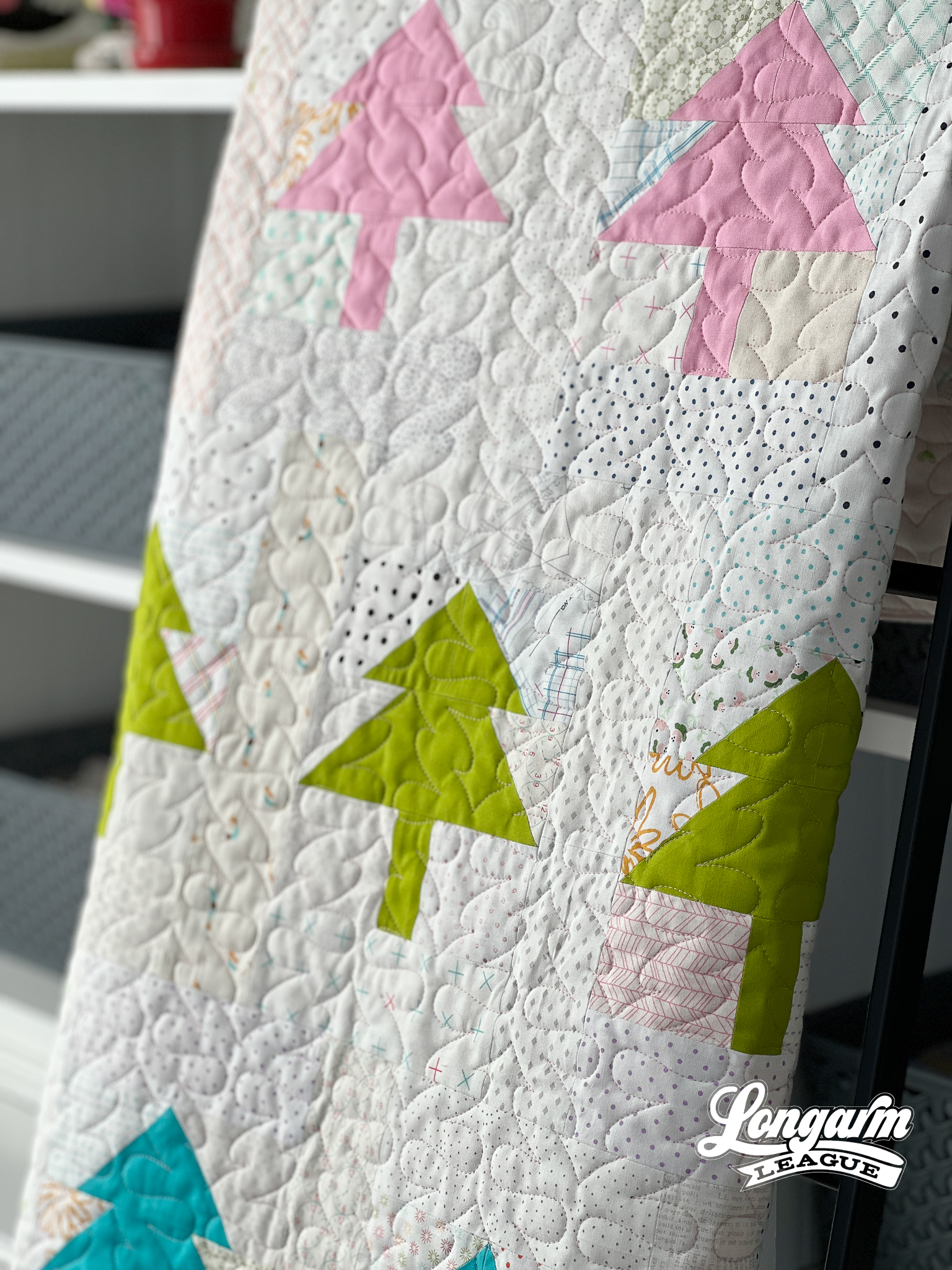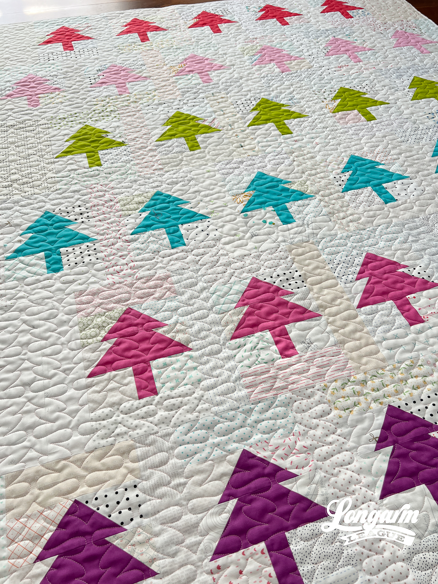 As mentioned earlier, this quilt pattern is called Tree Rows and was designed by Emily Dennis. When inspiration struck, I just had to go for it! You see, timing-wise, to release this panto in time for our December schedule, I had to sew the quilt top quickly—in a matter of days. Thrill-quilting at its best!